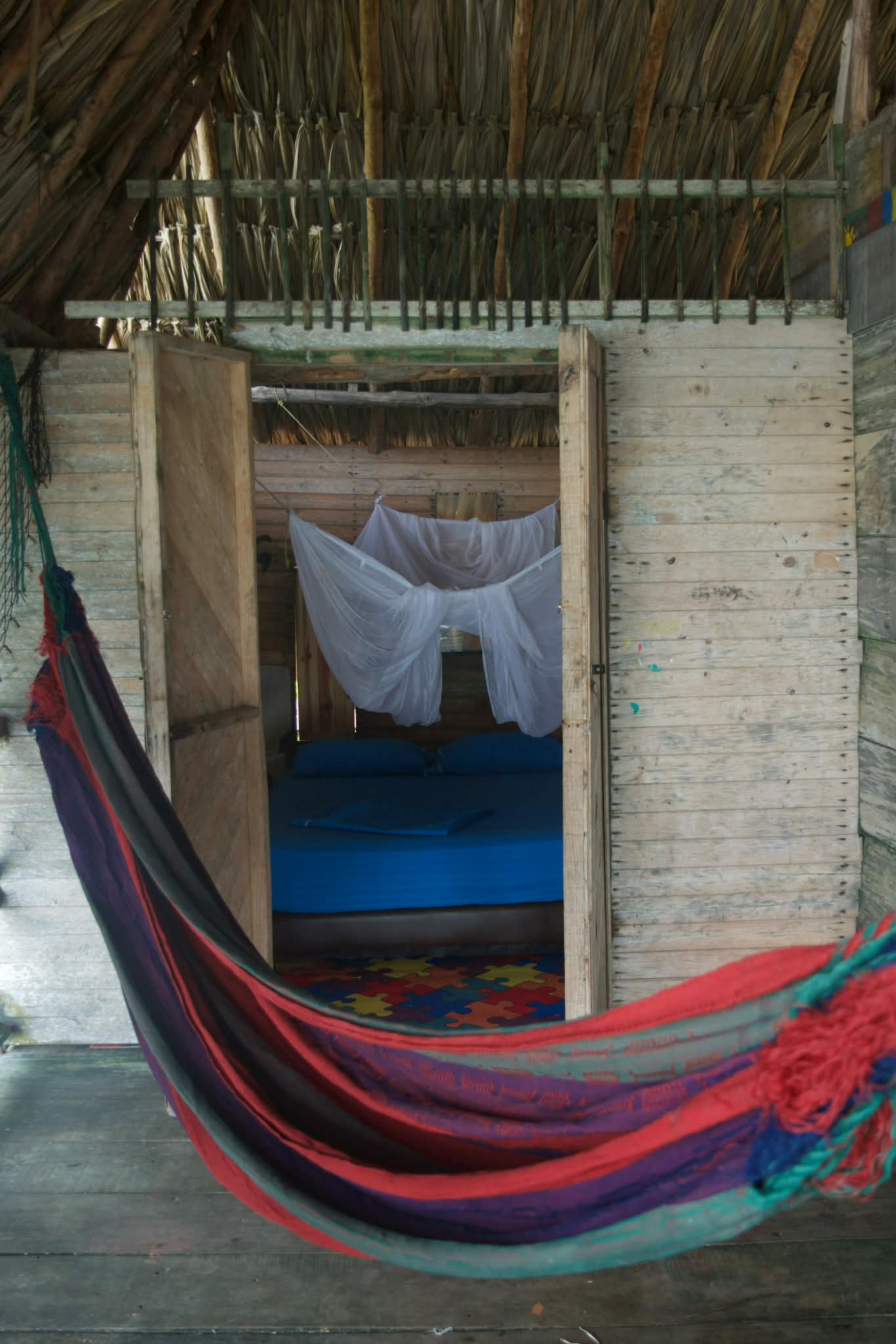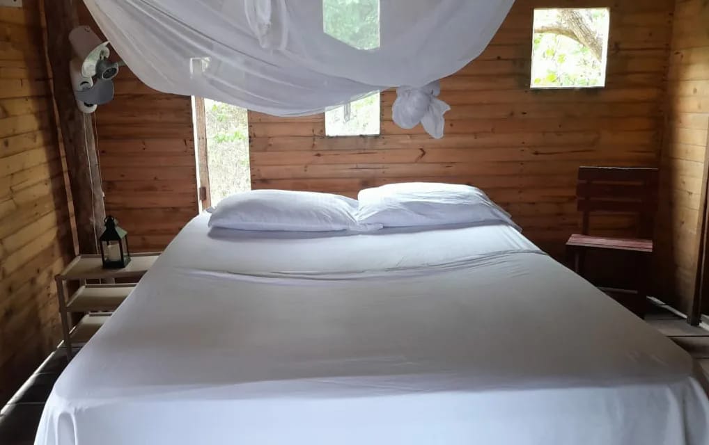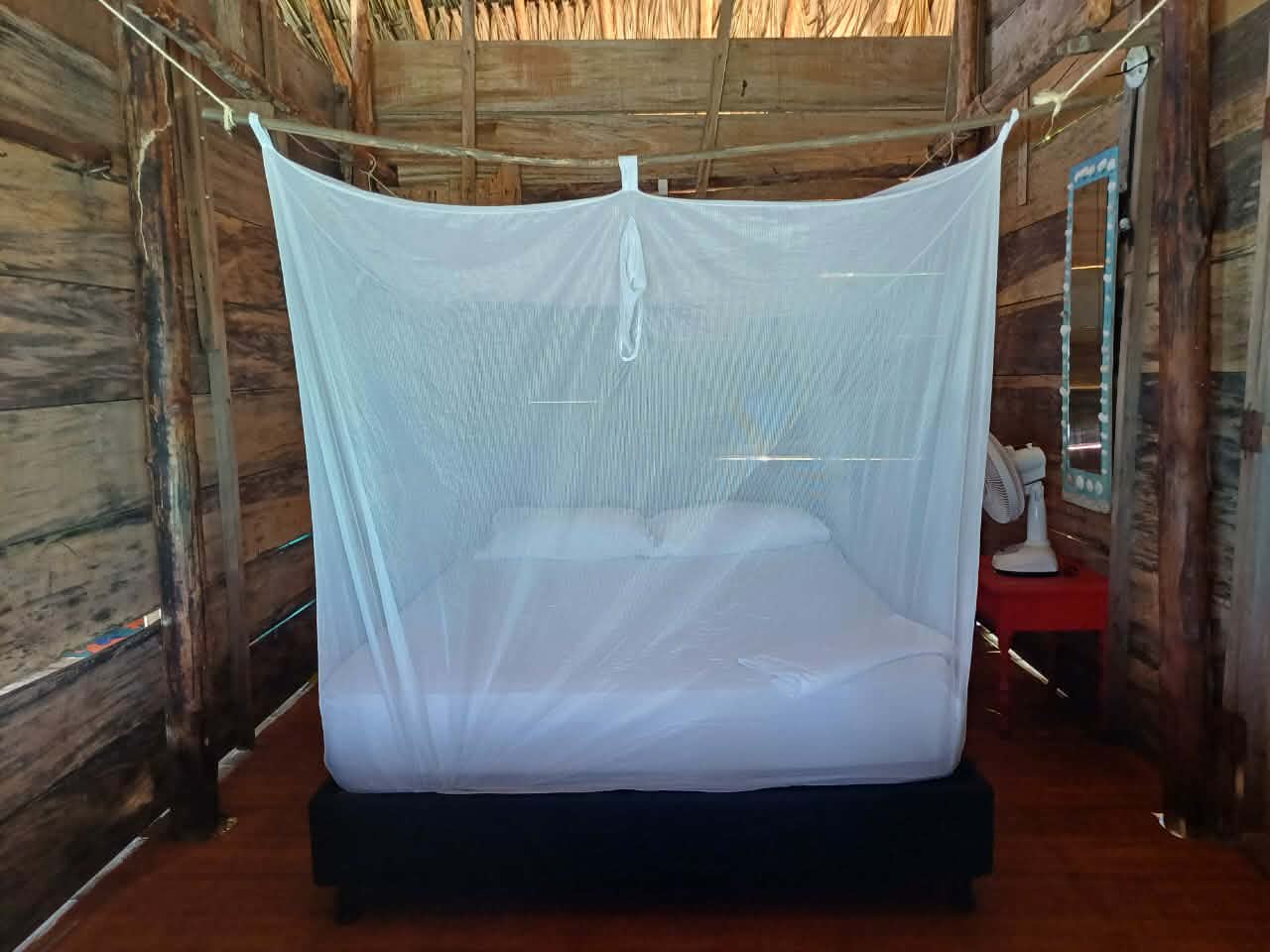 Bedding: One double bed with a mosquito net. / Una cama doble con toldillo.