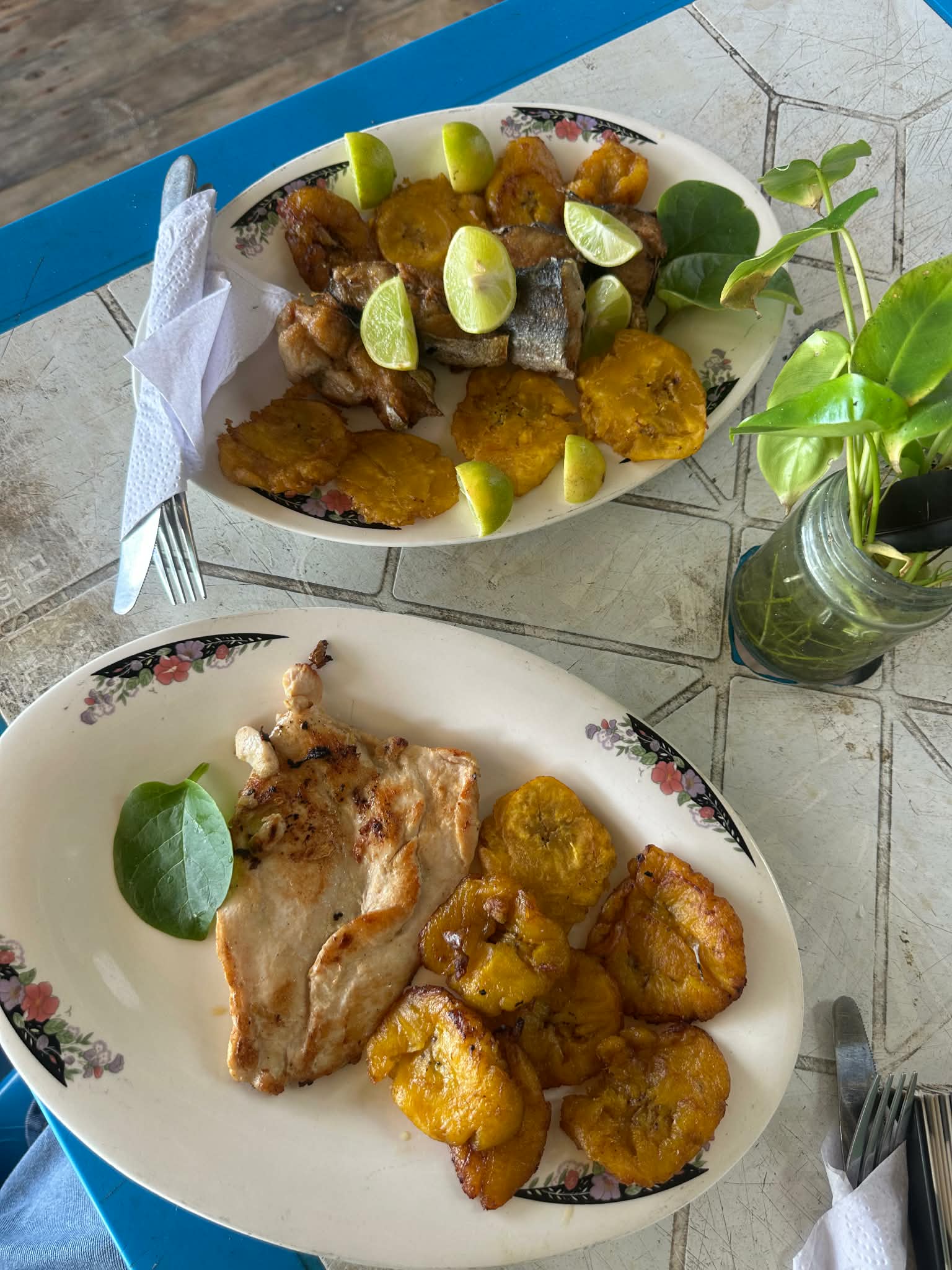 Almuerzo con pesca del día y jugos naturales.